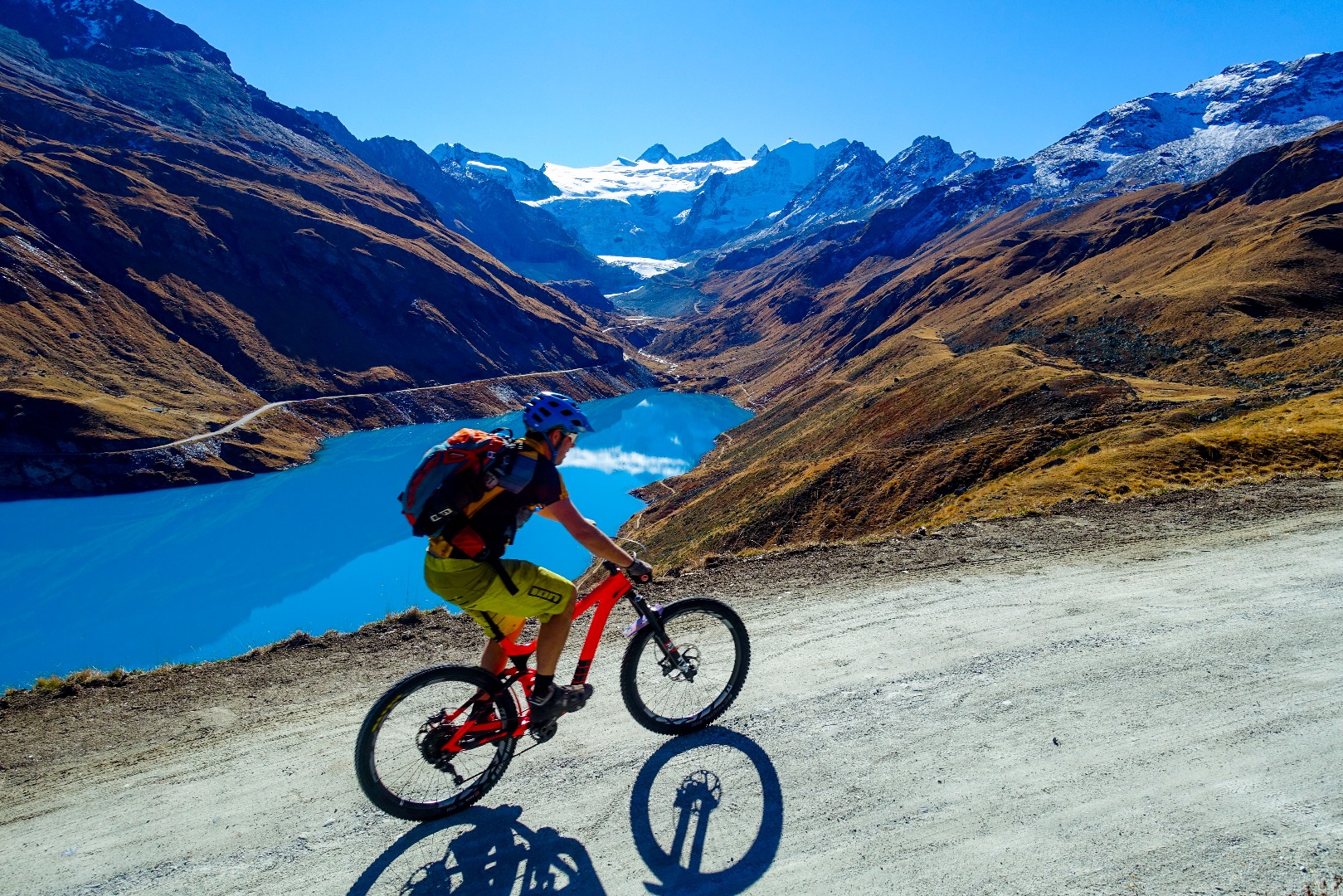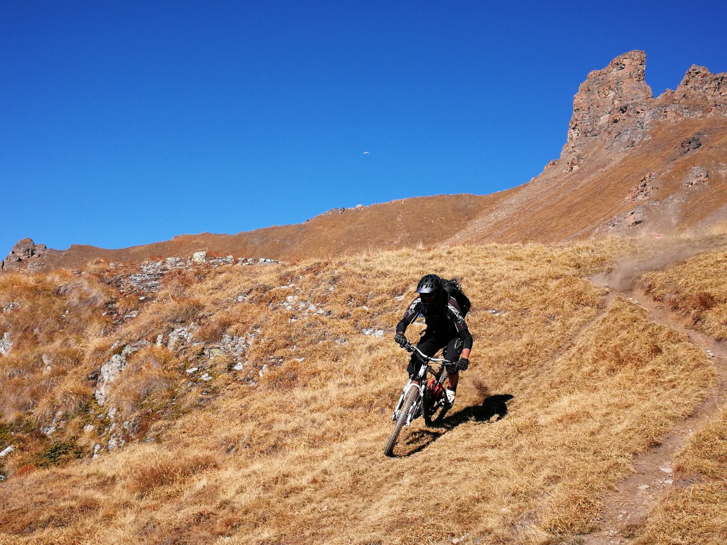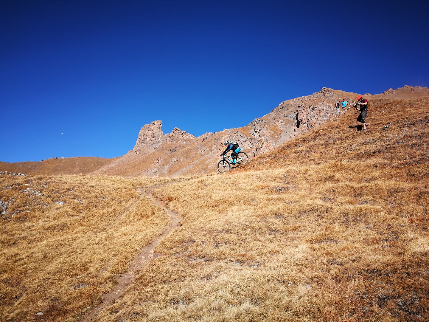 • Une superbe journée de bike ! Pas un nuage dans le ciel et en t-shirt à 3000m à mi-Octobre, pfffiouuu... Et ces paysages...à couper le souffle, vraiment une toute belle journée en montagne !