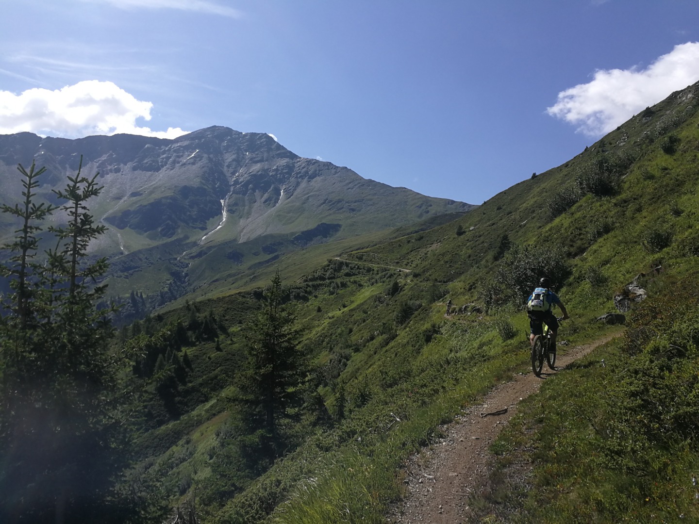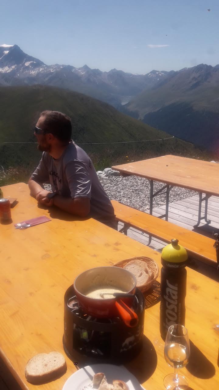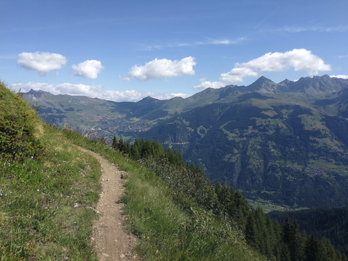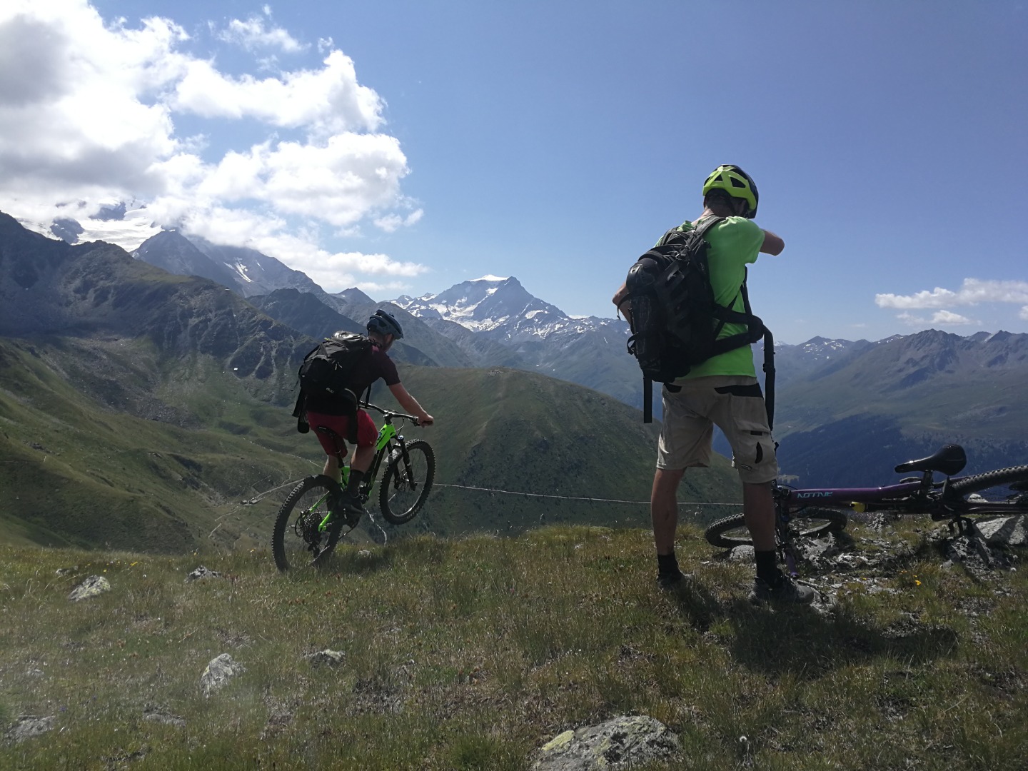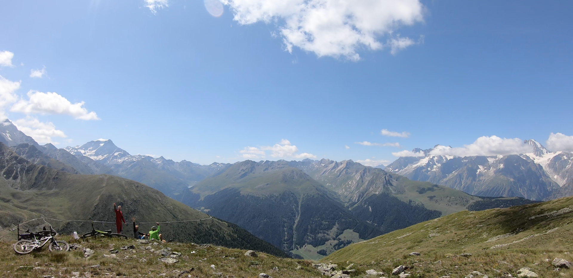 Enchainé avec : nuit à la cabane du Mont Fort – traversé très matinale du balcon en dessus de Verbier sur le super flow trail jusqu’au Chute du B. Descente 4 casques sur Cries.
