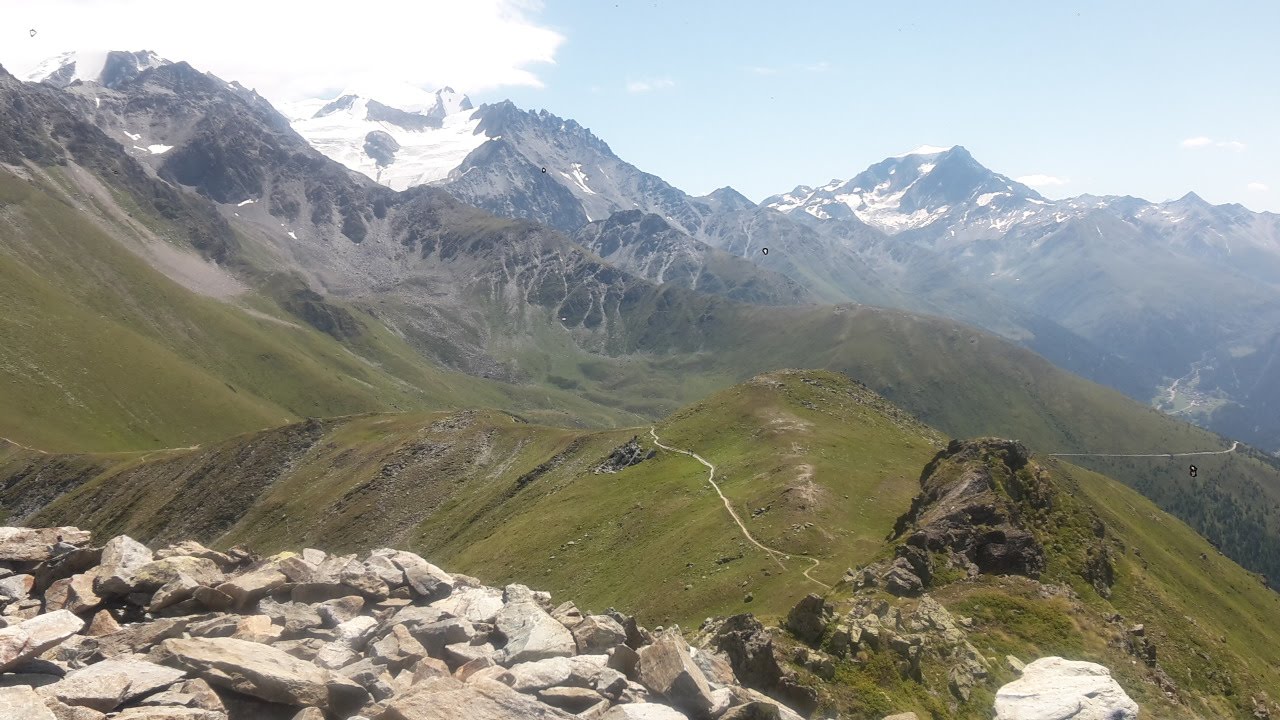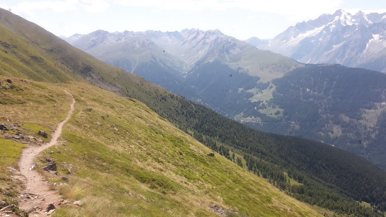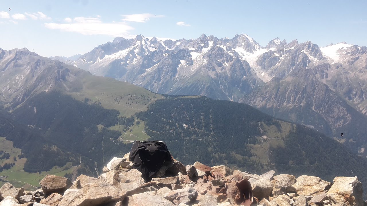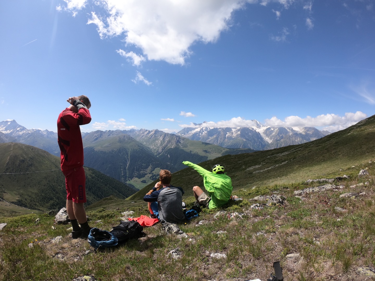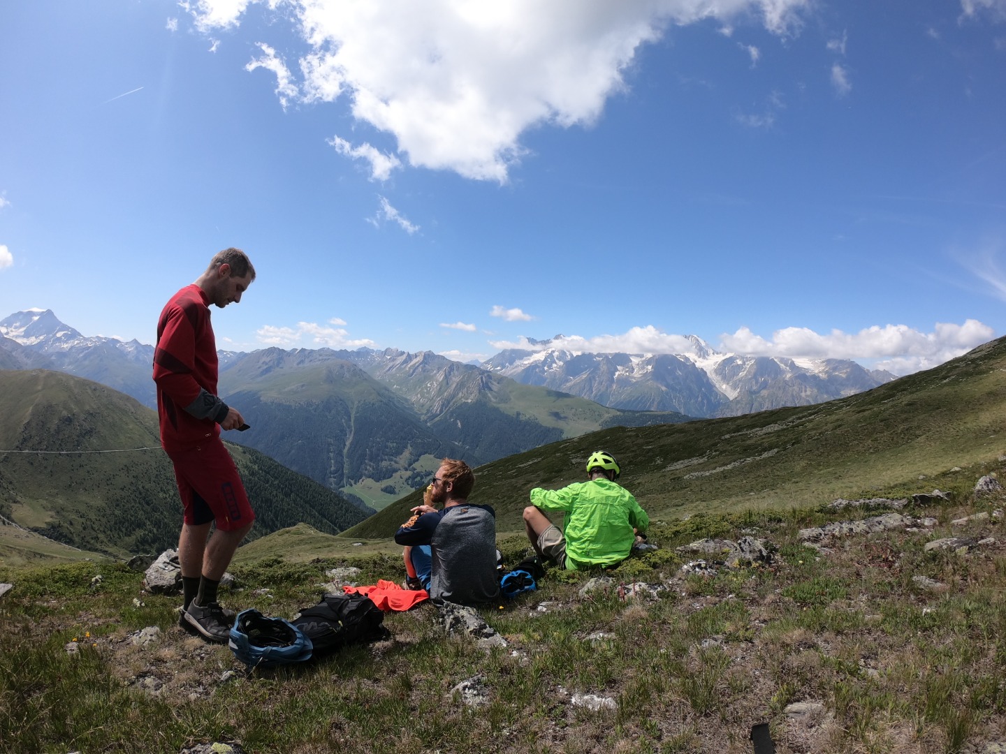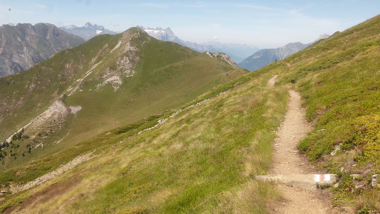 Enchainé avec : nuit à la cabane du Mont Fort – traversé très matinale du balcon en dessus de Verbier sur le super flow trail jusqu’au Chute du B. Descente 4 casques sur Cries.
