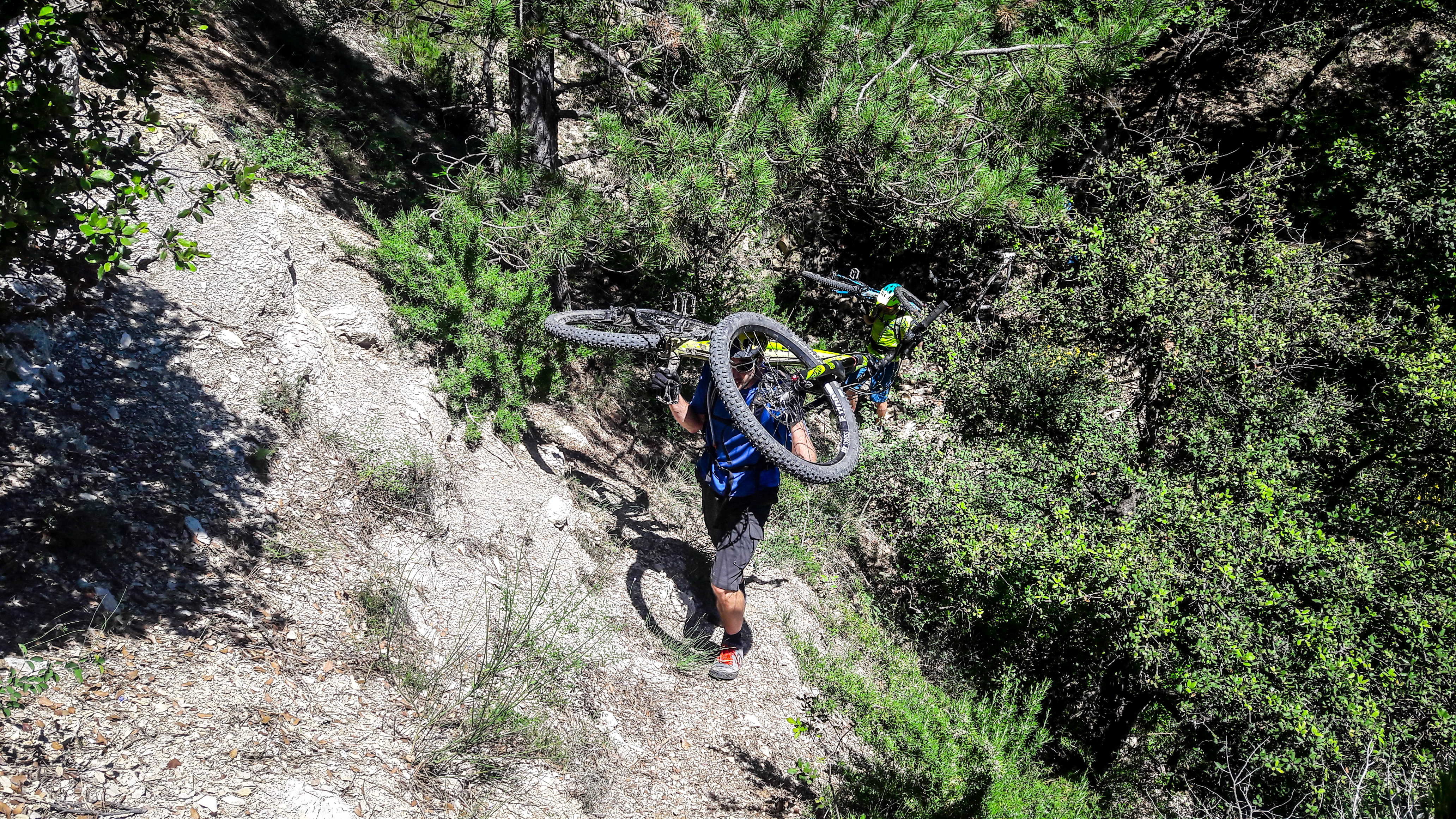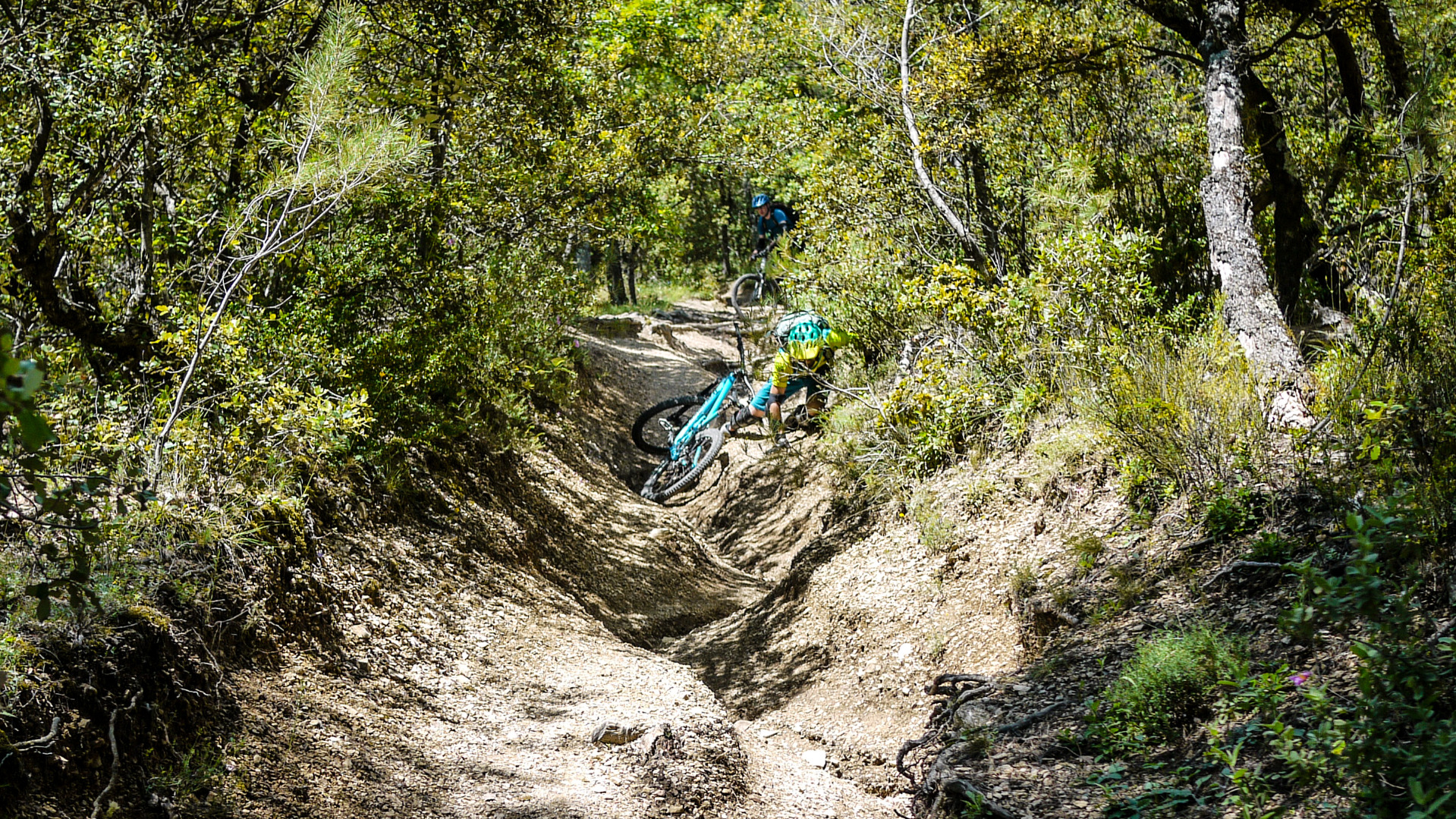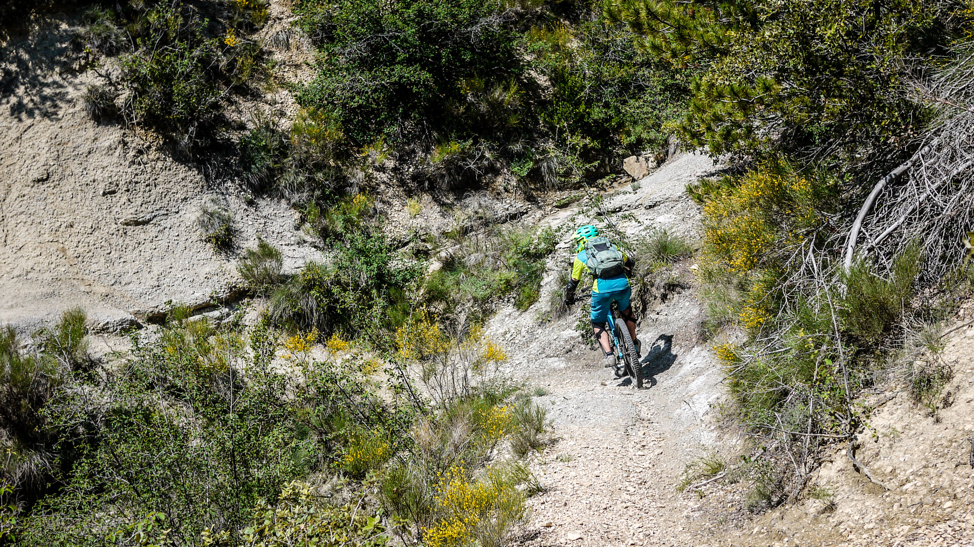La descente du coteau des Gamates est toujours aussi variée ! Du gros caillou fuyant sur le haut, du sous bois au milieu, de la ravine sur le bas...