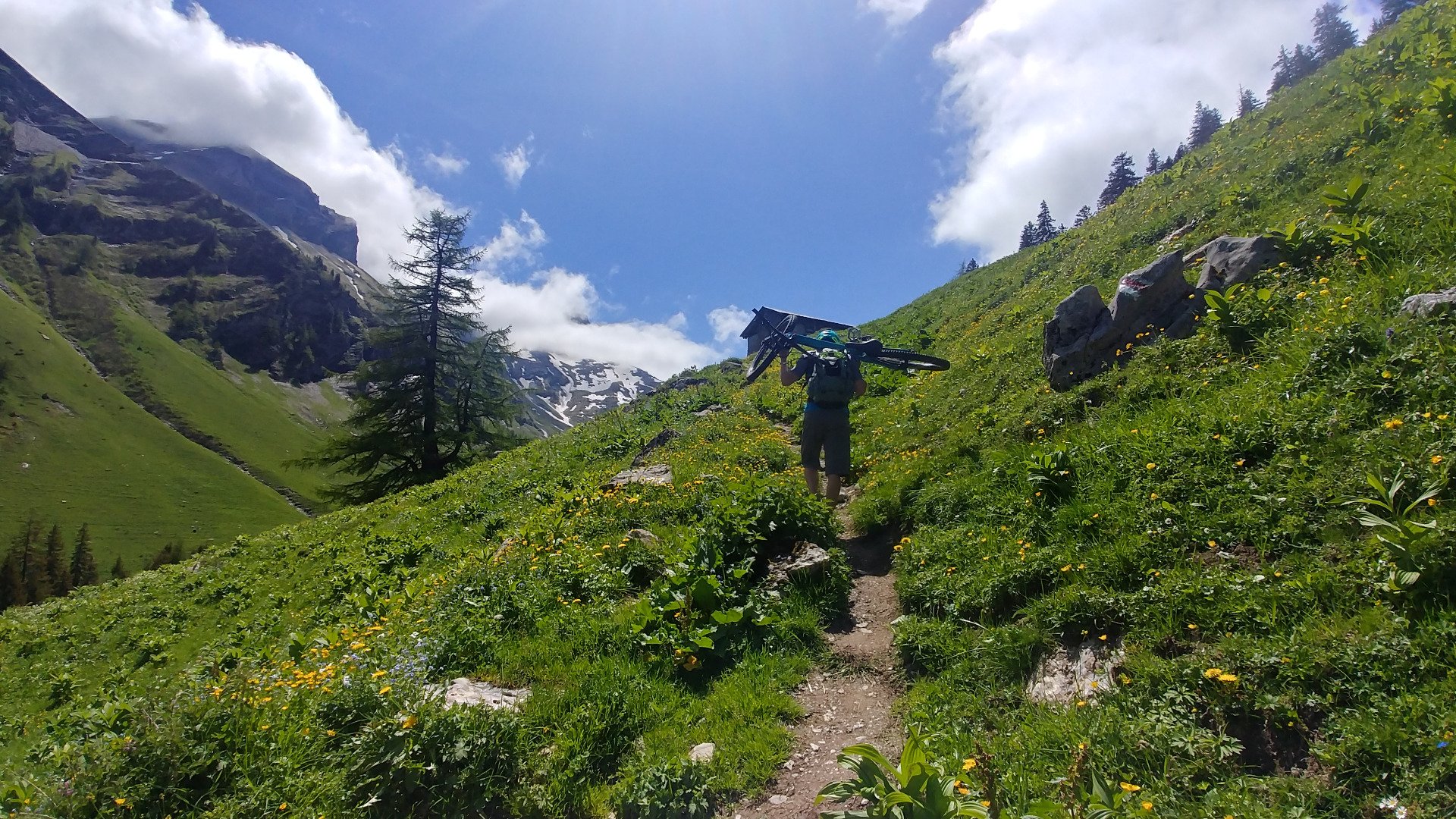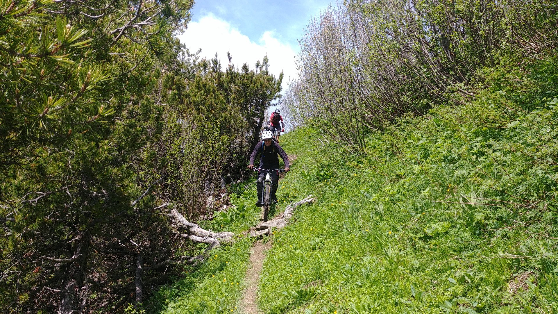 Suite à la pluie de la veille, le terrain était encore drôlement glissant, rendant encore plus technique cette descente du Creux de l'Enfer. C'est pas sur ce coup qu'on aura battu des records de vitesse, par contre, question concentration et observation attentive du terrain afin d'éviter de se foutre en bas en glissant sur une racine en dévers, on aura battu tous les records !