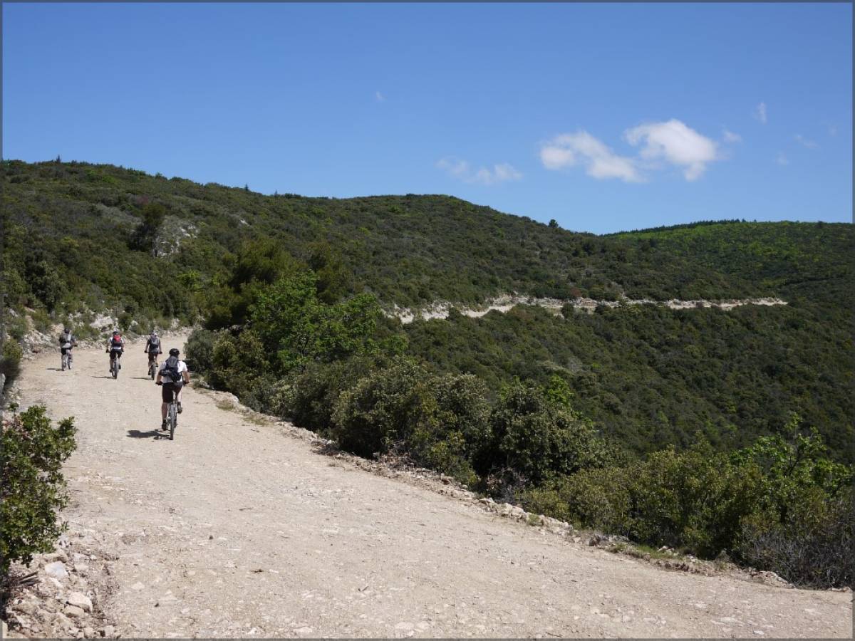 De là, on se dirigera vers les pentes nord du Petit Lubéron, que l'on remontera tranquillement via Les Crests puis la Chambarelle sur une piste bien roulante avant d'attaquer la dernière remontée jusqu'au Cap de Serre. Un petit poussage vous y attendra, mais rien de bien catastophique...