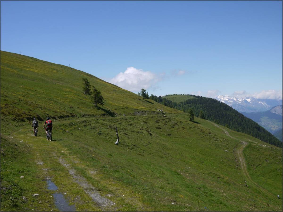 Pour maximiser le plaisir, on peut prolonger la descente jusqu'à Orsières. Il suffit de continuer le sentier évident depuis le point 1190 et ensuite de rejoindre Orsières via Montatuay. La partie entre le point 1190 et Montatuay est une véritable tuerie: c'est un goulet de 2m de large, raide, presque rectiligne...on dirait du bobsleigh, fantastique !!!