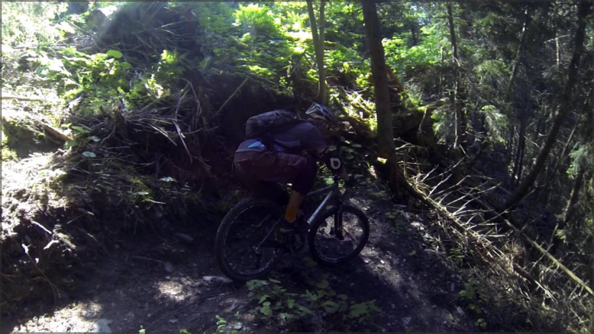 La seconde partie, jusqu'à l'altitude 1600m, est incroyable ! Le terrain est très accidenté et des arbres couchés, vestiges d'une tempête passée, obligent le sentier à serpenter entre les obstacles, forçant le VTtiste à enchaîner relances, virages, raidillons, dévers, slalom,... un fantastique passage que l'on peut réaliser sans poser pied à terre et sans pauses, mais au prix d'un effort physique éprouvant.