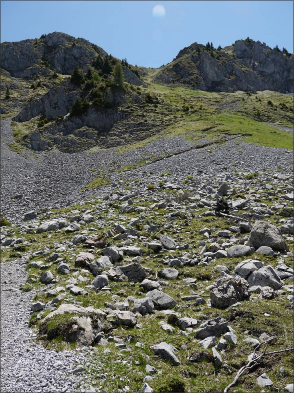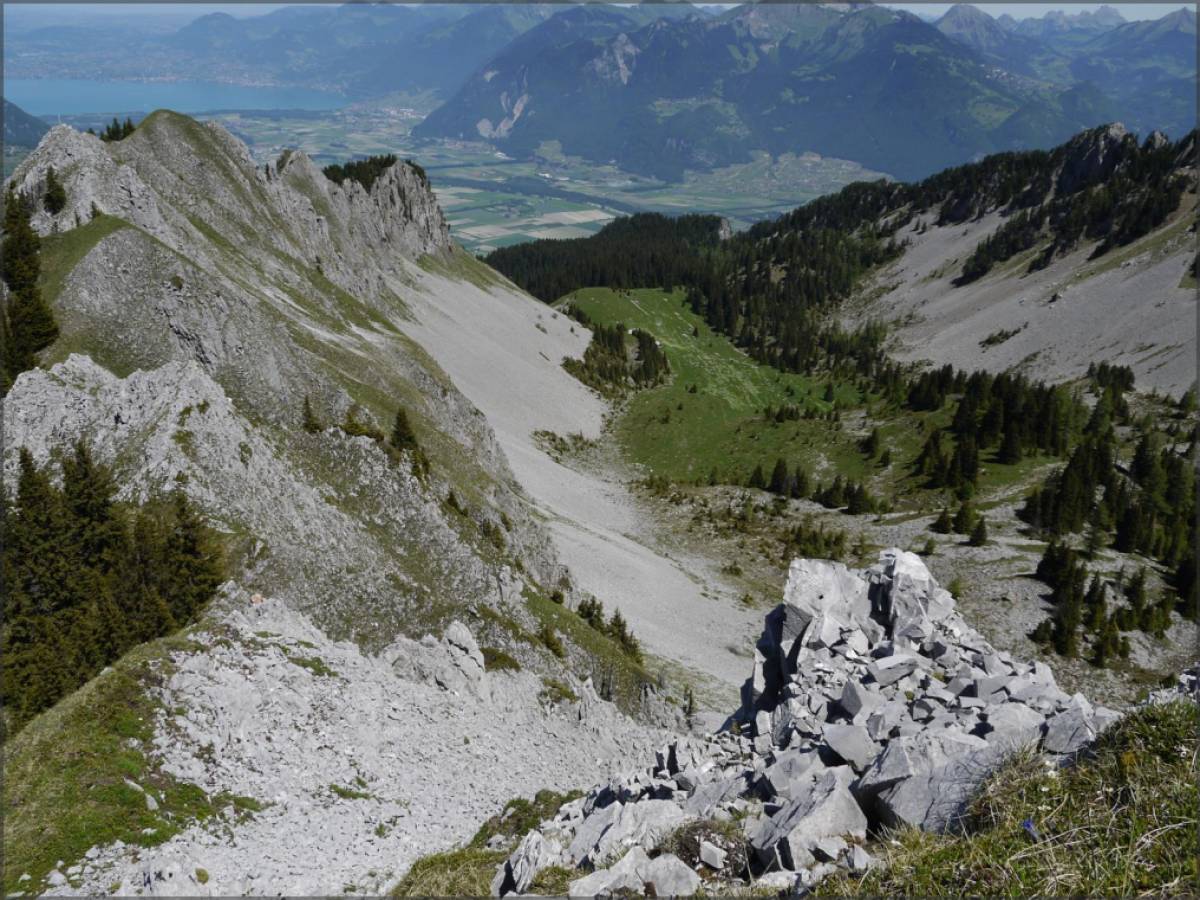 L'exposition devient raisonnable, mais le single traverse quelques châbles et cônes d'éboulement, où on préférera poser pied à terre, agripper le câble mis à disposition et éviter de se foutre en bas la montagne...il convient aussi de se montrer très prudent et de s'assurer qu'aucun éboulement n'est en court lors de ces traversées...